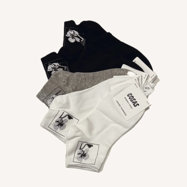 Skarpetki damskie Cosas. Gładkie, zdobione świecącymi elementami biżuteryjnymi.